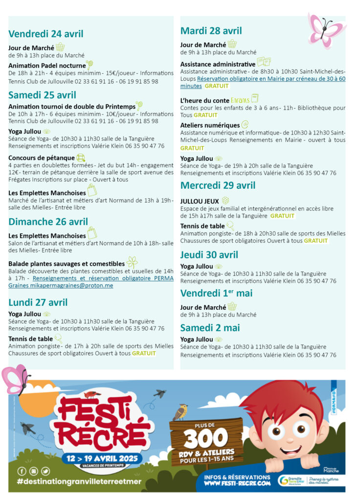 Découvrez le programme des vacances de printemps à Jullouville